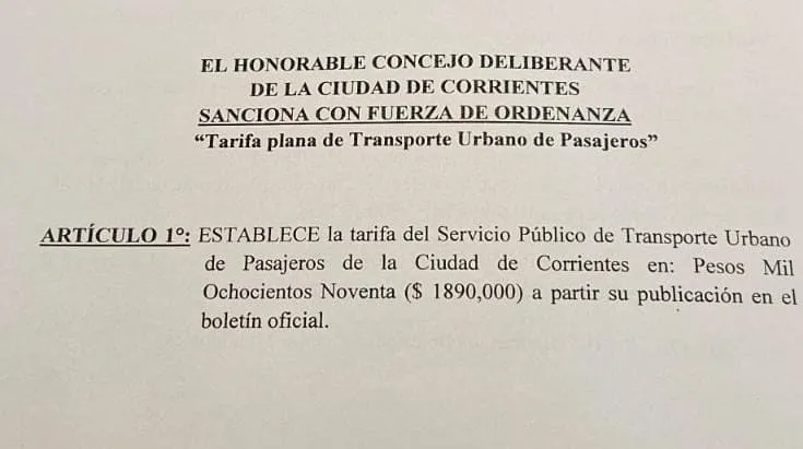 Todo listo para el aumento de la tarifa plana del servicio de transporte público de pasajeros, en la ciudad de Corrientes, mañana jueves 16 de octubre, el Concejo Deliberante aprobará el incremento a $1890.