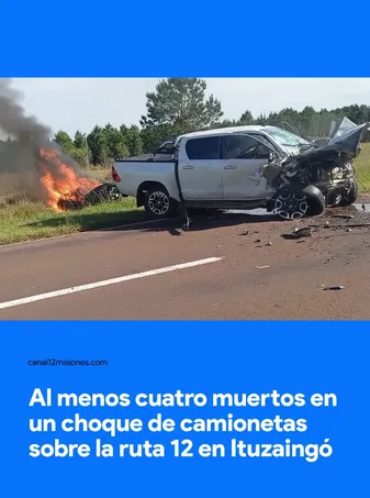 EN ITUZAINGÓ. Otro siniestro vial en la Ruta 12 enluta a familias. Una de las camionetas se incendió y se quemaron dos personas. Una madre y su hijo murieron y otro resultó herido y se desplazaban en otra camioneta.