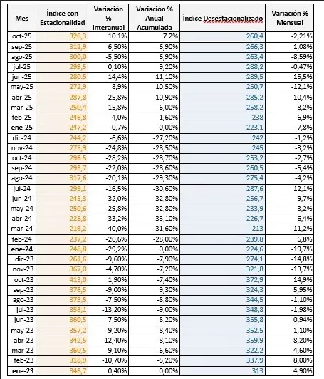 Es conveniente aclarar que el ISAC que se publicó está referido al mes de septiembre de 2025, por lo tanto, no es comparable con este Índice Construya, correspondiente al mes de octubre 2025.