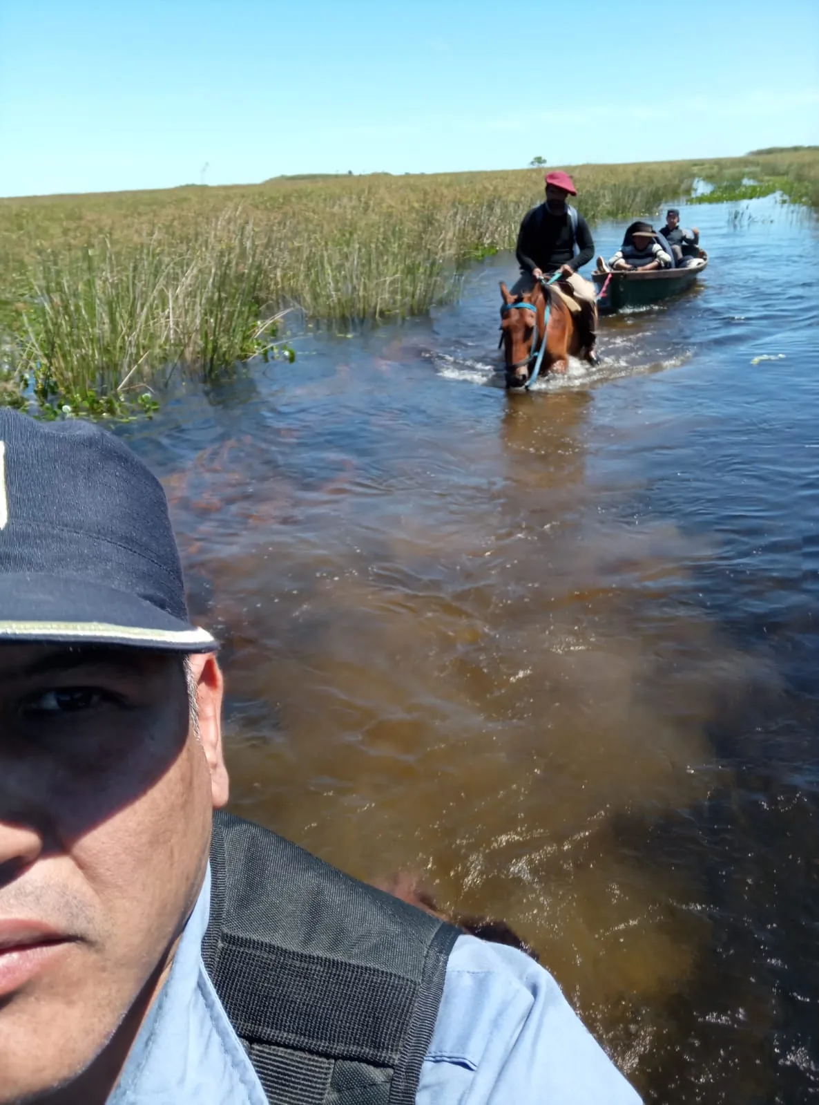 En horas de la mañana de ayer 09-11-25, efectivos de la Comisaría distrito de Villa Olivari, debieron realizar un arduo desplazamiento a través de esteros y terrenos de difícil acceso para intervenir en un hecho registrado en zona rural de Loma Alta y Los Mojones, dentro del Parque de Reserva Iberá.