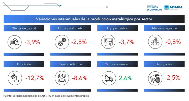 En síntesis, octubre profundizó el cuadro de caída generalizada en la actividad metalúrgica. La mayoría de los sectores continúa con variaciones interanuales negativas y sin señales claras de un cambio de tendencia.